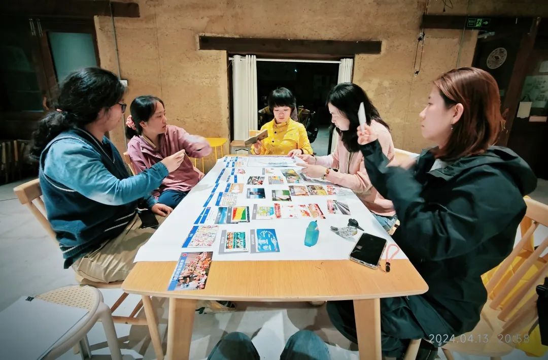 中:2024年4月,玲珑计划春聚活动在杭州青山村开展,邓欣与玲珑伙伴研讨体验“可持续食物拼图”桌游(中间为邓欣)