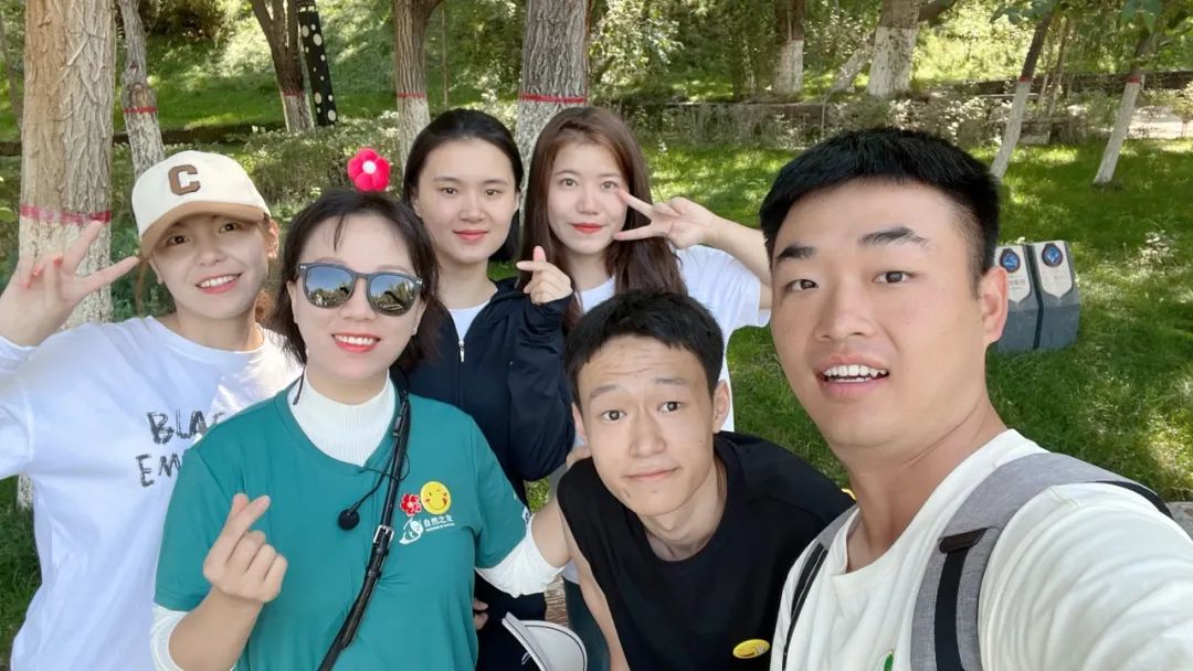 2023年9月9日,邓欣和伙伴们在citywalk活动中合影留念(邓欣,前排左1)