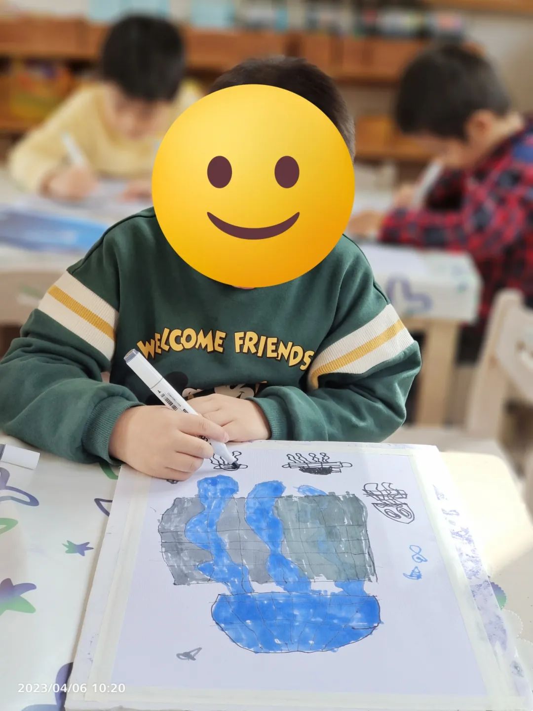 2023年,幼儿园小朋友在创作环保宣传海报