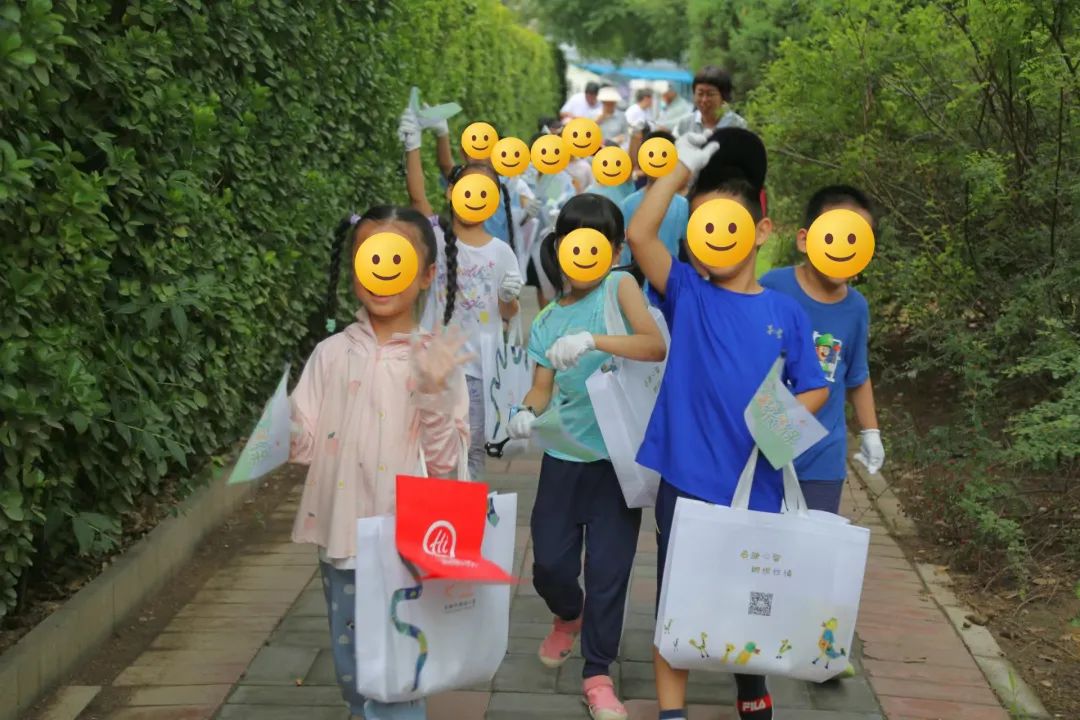 2023年,启明国风幼儿唱着原创环保儿歌开展净园活动,一边行动一边宣传